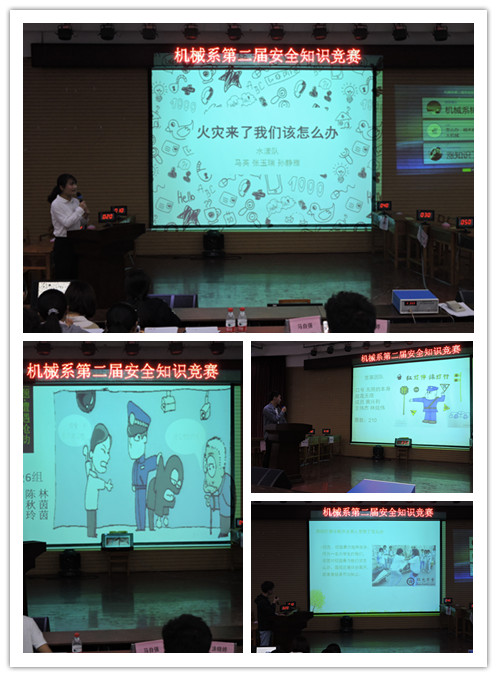 本次竞赛由必答题、安全主题海报讲解、抢答题、安全主题解说四个环节组成,并和前段时间机械系安全主题海报制作比赛有机结合。每支参赛队伍PPT所展示的火灾、诈骗、抢劫、车祸、斗殴等内容,这些看似离我们很远的事情其实随时都可能发生在我们身边,当灾害降临时,如何做到不慌乱,有方法、去面对?因比赛素材和学生日常生活结合度高,现场选手、观众互动性强、氛围热烈、教育效果佳,获得了现场老师和同学们的一致好评。