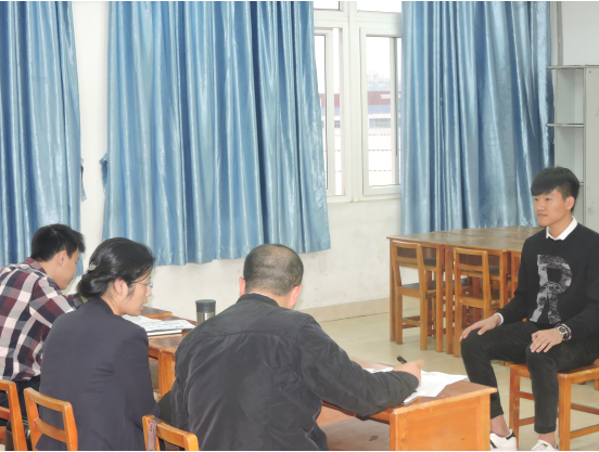 招聘在学院3区5楼4个教室进行,从中午1点开始,对机械系符合报名条件的14机电及12机电Z两个班级40名学生进行了为时4个多小时笔试、面试,并在下午5:20圆满结束了本次招聘活动。