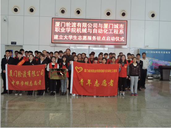 3月30日,厦门城院机械系以培养学生骨干力量,实现学生志愿服务常态化为目标的“厦门城市职业学院机械系大学生志愿者服务基地”在厦门邮轮中心码头正式挂牌。厦门轮渡公司总经理黄育斌、邮轮中心码头经理甘雄亮、厦门城院机械系学工口教师、学生会大学生志愿者部分成员和厦门邮轮码头部分工作人员出席仪式。