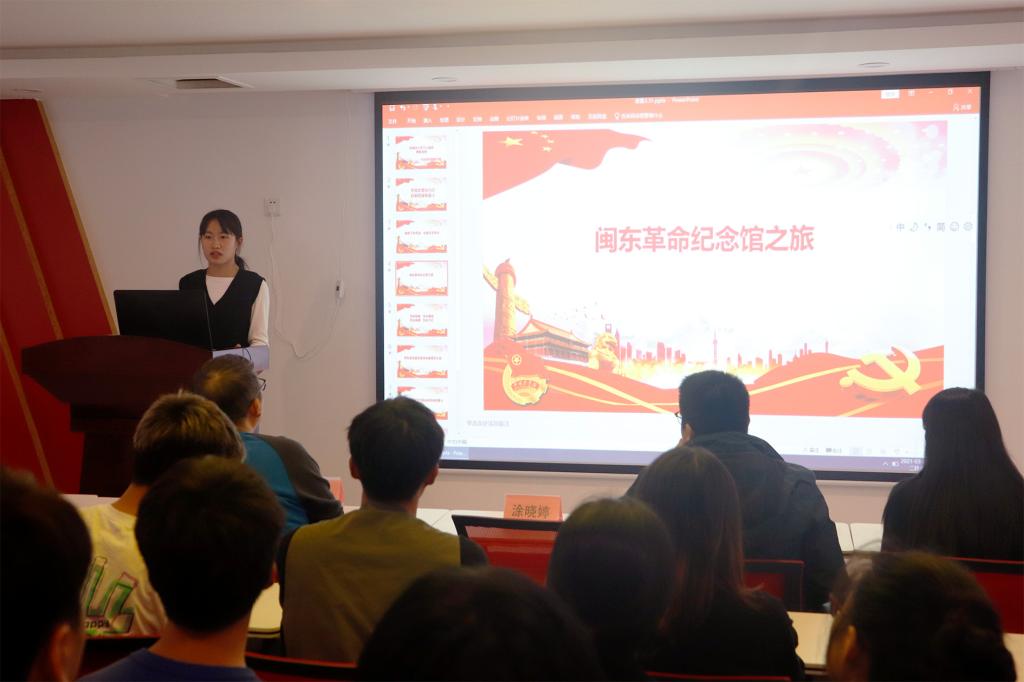 活动现场,老师、学生们共同观看了“百年党史述职报告”视频,感受一代代中国共产党员用鲜血、勇气、智慧、力量写就的锦绣百年。学生代表刘子玲汇报了关于学习闽东革命历史的经历和感悟;陈奕武老师以校园诈骗案作为引入,阐述大学生党员如何在校发挥先锋模范作用;谢伟坛老师从法律角度解析案例,并从党的发展与法律体系完善相并行的历史勉励广大同学要知法、懂法、守法、用法。