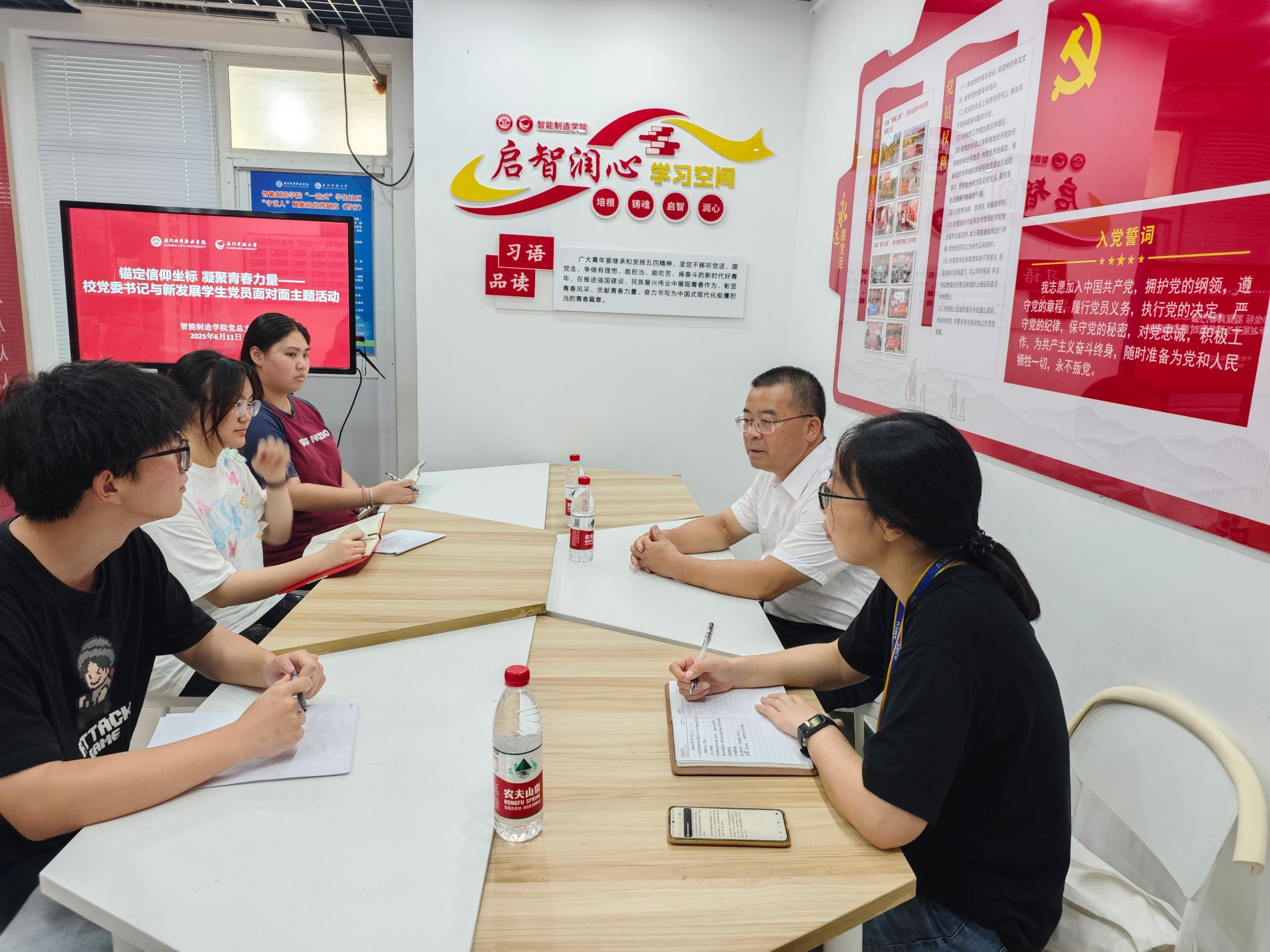 为加强新发展学生党员教育管理,6月11日,智能制造学院党总支在“一站式”学生社区工作站开展“锚定信仰坐标 凝聚青春力量”校党委书记与新发展学生党员面对面活动。党委书记蒋先立、学生党支部书记王琰,以及新发展学生党员参加座谈。