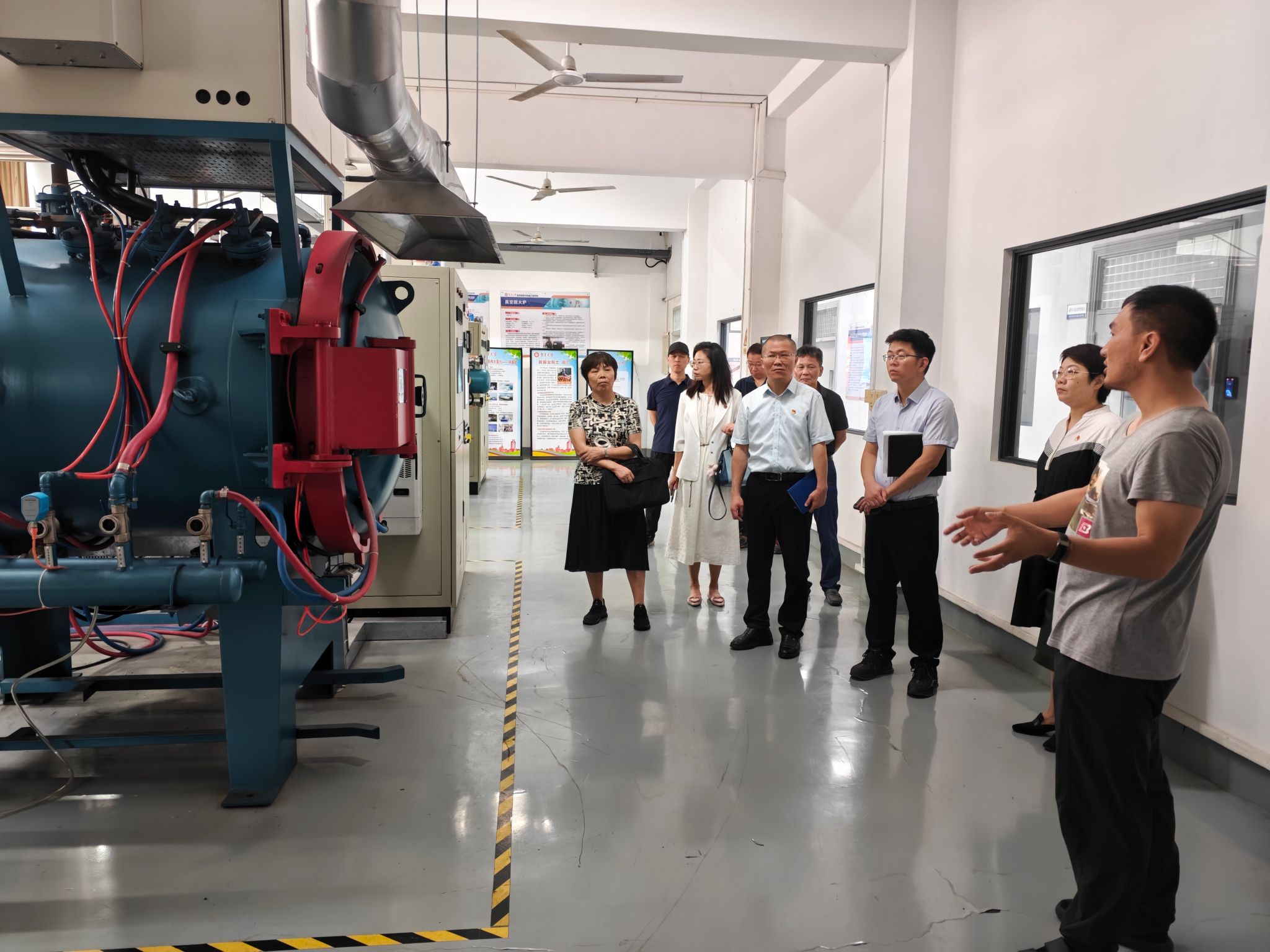 座谈会前,在海洋装备与机械工程学院党政负责人陪同下,调研组一行还实地参观了“赵振业院士抗疲劳制造科研平台”、超声冲击设备、各类疲劳试验机、显微镜等科研设备的实验室,以及“智能物流装备与控制创新实验室”等。