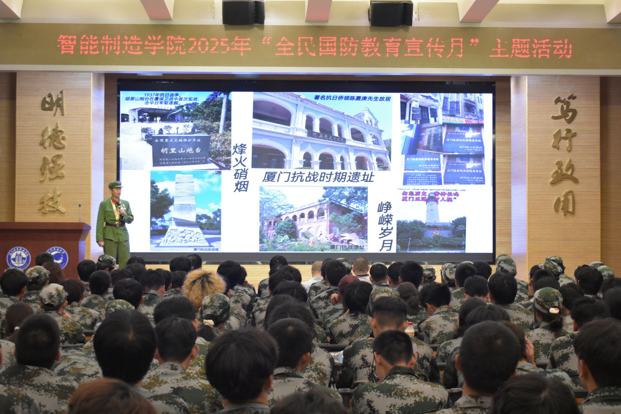 国无防不立,民无防不安。在第十二个中国烈士纪念日到来之际,为进一步教育引导师生崇尚英雄、赓续红色血脉,9月24日,智能制造学院党总支在会议中心组织开展2025年全民国防教育月主题活动。智能制造学院党总支负责人、学校军事理论教研室主任赖福星、辅导员和教师代表及2025级全体同学参加了会议。